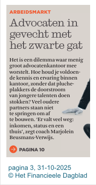 Nieuw perspectief voor advocaat partners die zich afvragen: blijf ik op dit pad of is het tijd voor iets anders? Een besloten en interactieve uitwisseling met ervaringsdeskundigen en vakgenoten over het hoe en wat van het verleggen van je koers. Hoe doe je dat? Wat betekent het persoonlijk voor je? Hoe kun je omgaan met risico’s, kansen en verborgen consequenties? Gedurende 2,5 uur bieden we helderheid, verdieping en inspiratie.